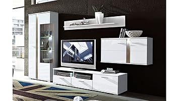 Wohnwand Kito Anbauwand Weiss Hochglanz Wohnzimmer Schrankwand Inkl